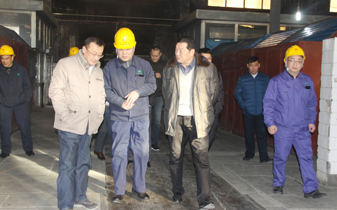 1月29日,沂源縣縣委書記王義樸(右前二)一行十余人來(lái)我公司看望省級(jí)勞動(dòng)模范、董事長(zhǎng)柴文...